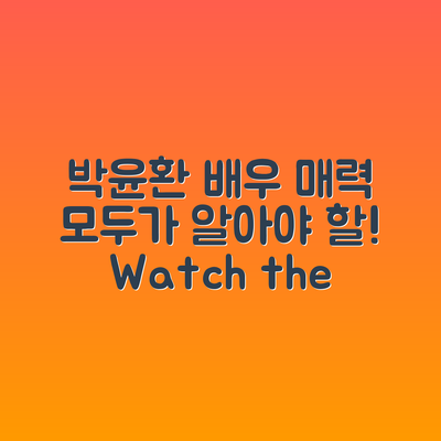 여러분, 박윤환 배우에 대해 들어보셨나요? 그가 연기하는 모습을 보면 정말 매료되곤 합니다. 제가 처음 그를 보았을 때는 ‘어? 이 분 어디선가 본 것 같은데?’라는 생각이 들었어요. 그의 연기는 정말 사람의 마음을 사로잡는 힘이 있답니다.